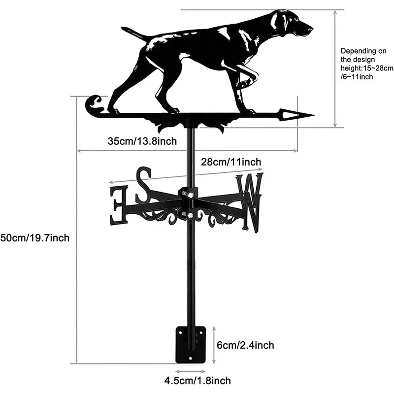 Animal Wind Vane Metal Animal Dog Ornament Standing Roof Wind Direction Indicator For Outdoor Garden Yard Shed Home Fence Post